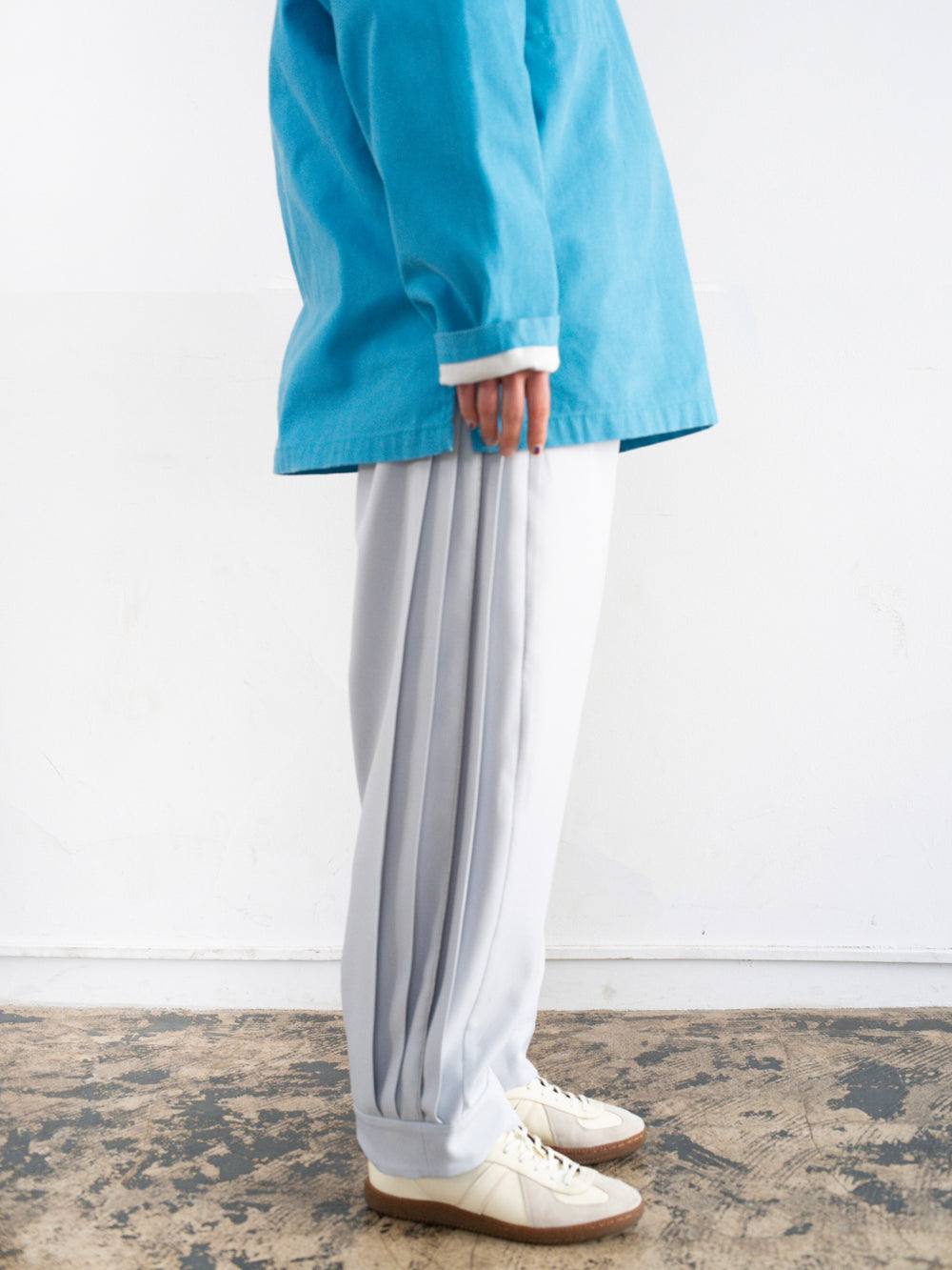 itochiの唯一無二感のあるデザインかつ代表的なボトム「プリーツトラックパンツ」に、ogata junjiが手がけるMETHO別注色の「パウダーブルー」が登場。
